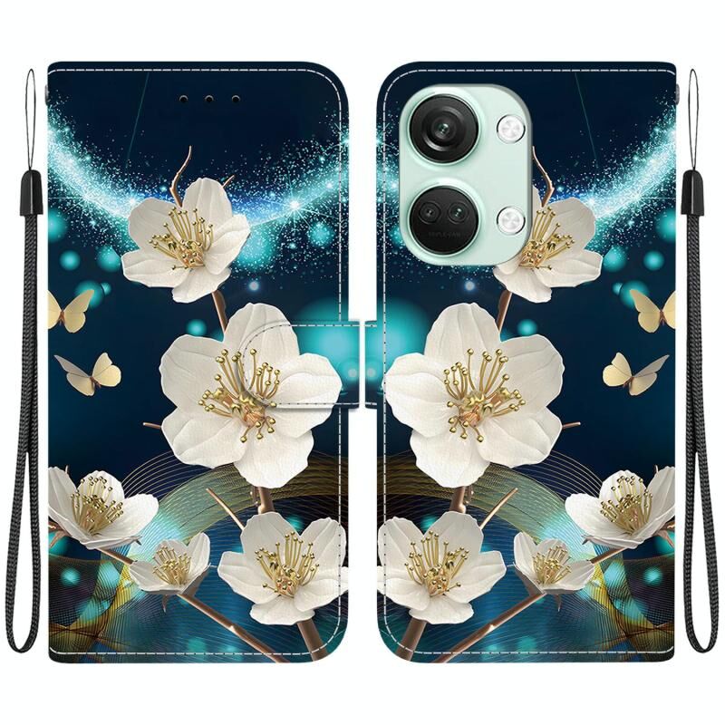 Θήκη τηλεφώνου από δέρμα με πολύχρωμη σχεδίαση κρυστάλλινης υφής για OnePlus Ace 2V 5G / Nord 3 (Μαγνολία)