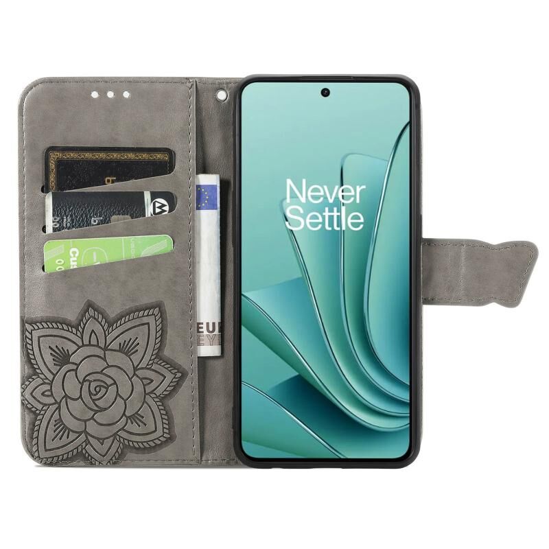 Θήκη τηλεφώνου από δέρμα με ανάγλυφο σχέδιο πεταλούδας και λουλουδιών για OnePlus Ace 2V (Μαύρο)