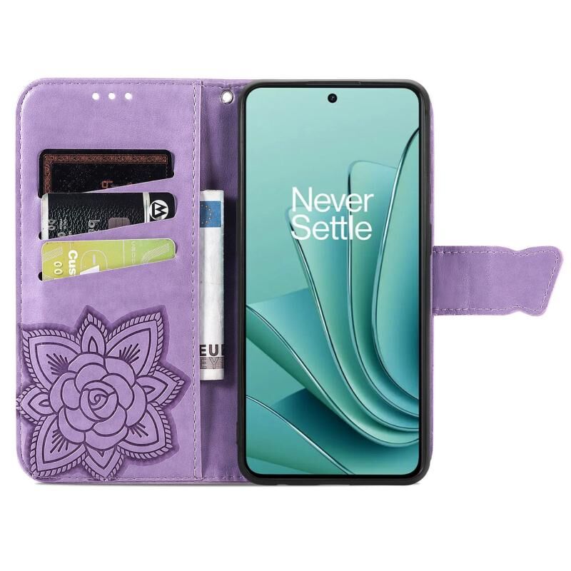 Θήκη τηλεφώνου από δέρμα με ανάγλυφο σχέδιο πεταλούδας και λουλουδιών για OnePlus Ace 2V (Μαύρο)
