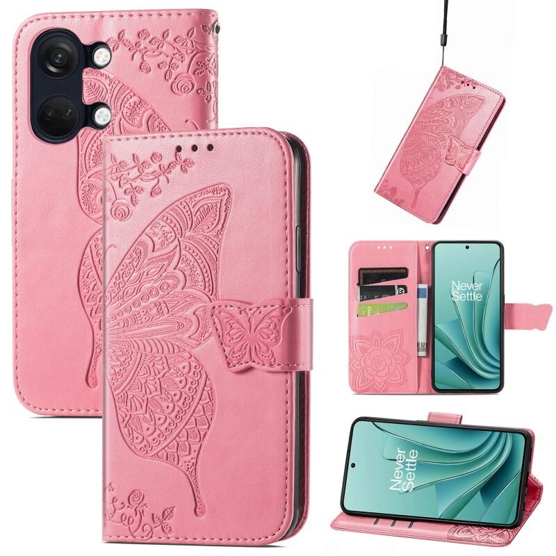 Θήκη τηλεφώνου από δέρμα με ανάγλυφο σχέδιο πεταλούδας και λουλουδιών για OnePlus Ace 2V (Μαύρο)