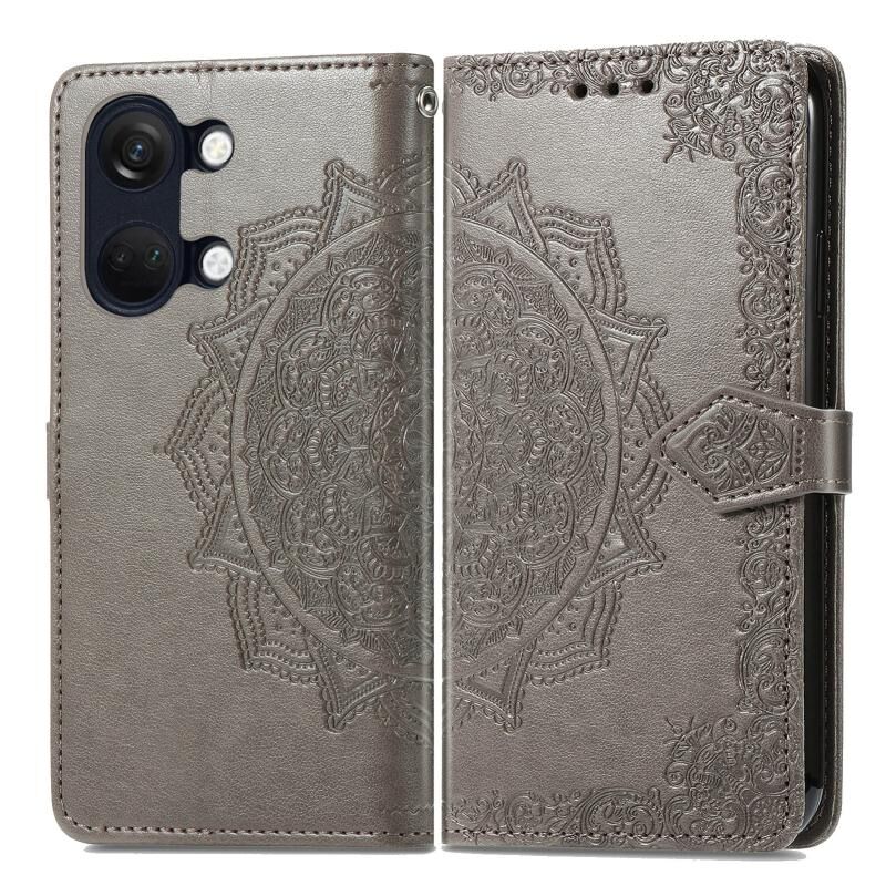 Για OnePlus Ace 2v Mandala λουλούδι ανάγλυφο δερμάτινη θήκη τηλεφώνου (γκρι)