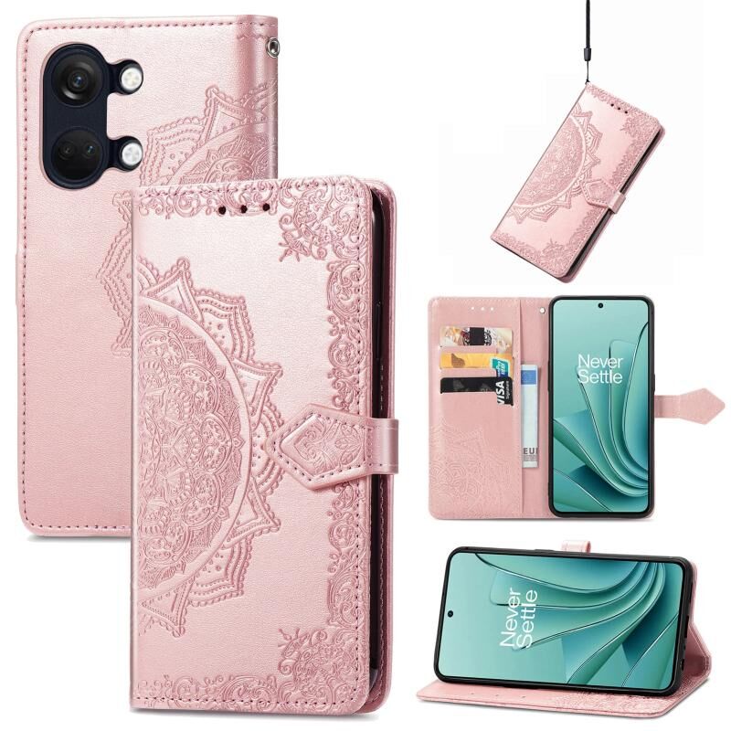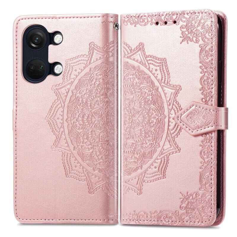Για OnePlus Ace 2v Mandala λουλούδι ανάγλυφο δερμάτινη θήκη τηλεφώνου (Rose Gold)