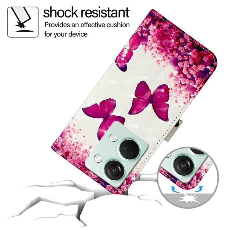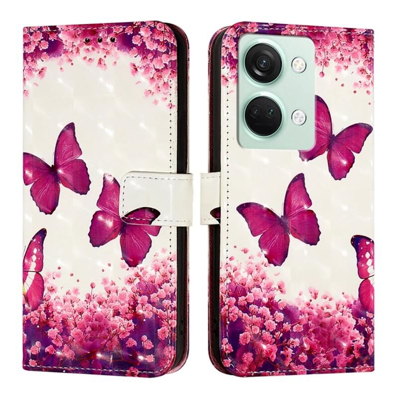 Θήκη τηλεφώνου από δέρμα με οριζόντιο άνοιγμα και τρισδιάστατη ζωγραφική για OnePlus Ace 2V / Nord 3 (Ροζ Πεταλούδα)