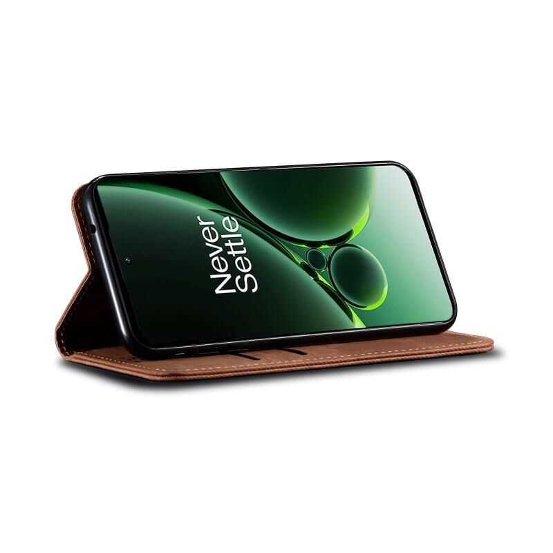 Για OnePlus Ace 2V / Nord 3 Denim υφή Flip υπόθεση τηλεφώνου δέρμα (καφέ)