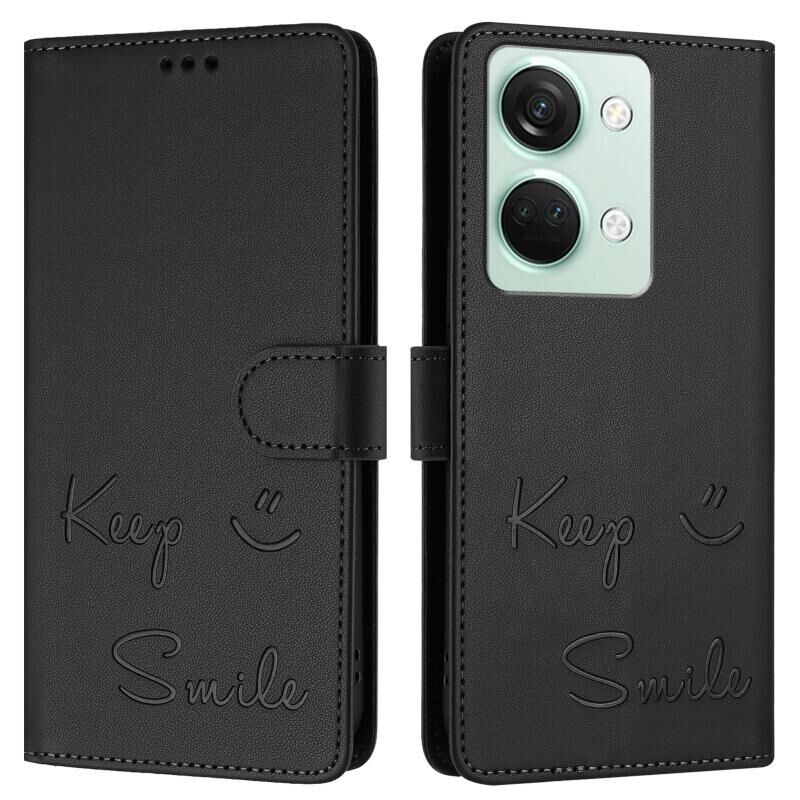 Για OnePlus Ace 2V / Nord 3 Χαμόγελο ανάγλυφο RFID δερμάτινη θήκη τηλεφώνου (Μαύρο)