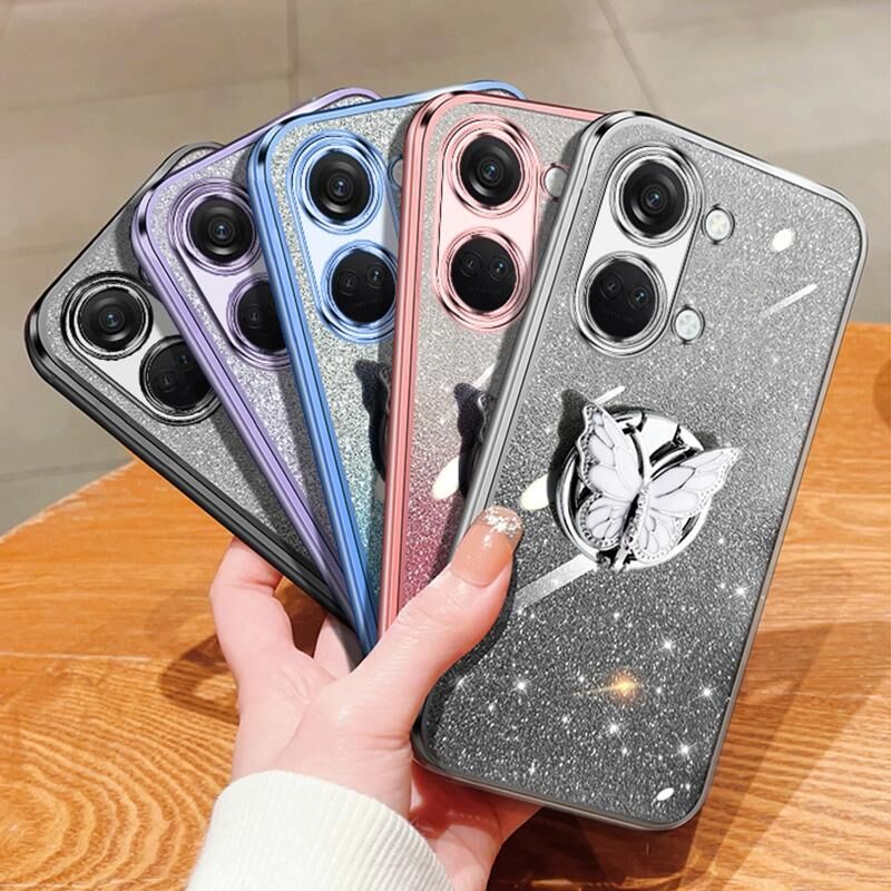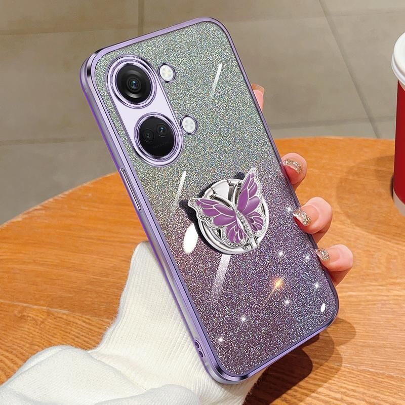 Για OnePlus Ace 2V επιμεταλλωμένο διαβάθμιση Glitter πεταλούδα κάτοχος TPU τηλέφωνο υπόθεση (μωβ)