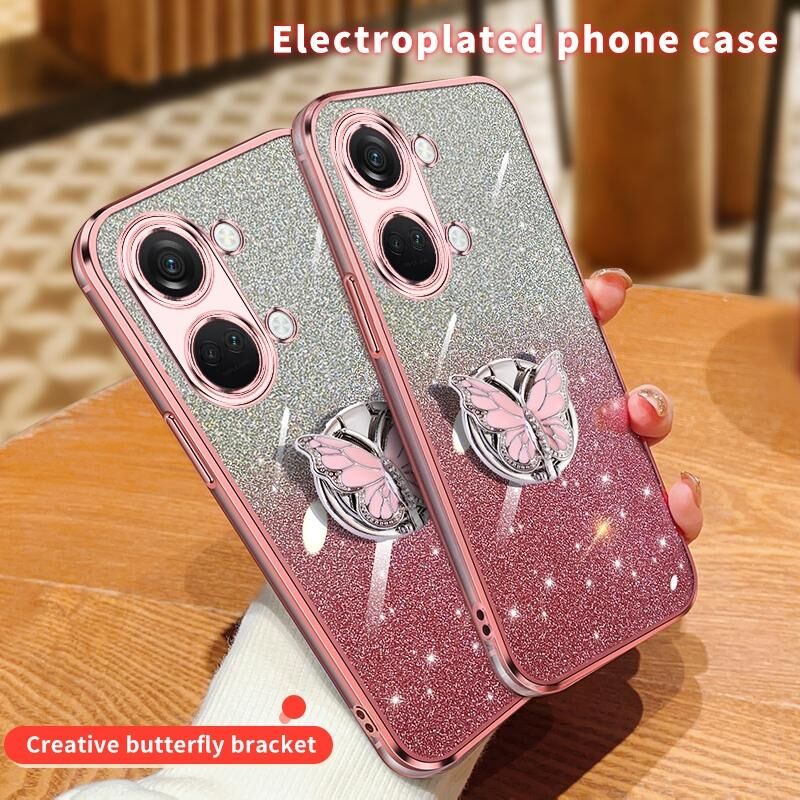Για OnePlus Ace 2V Επιμεταλλωμένο διαβάθμιση Glitter πεταλούδα κάτοχος TPU τηλέφωνο υπόθεση (Sierra Blue)