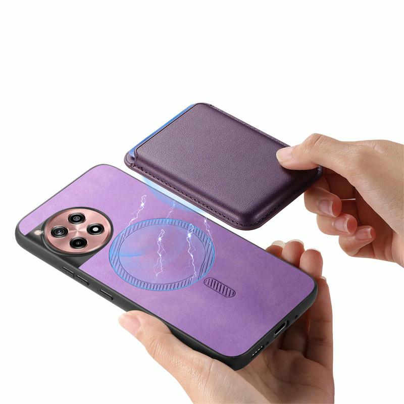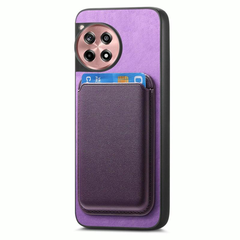For OnePlus Ace 3 / 12R 5G Retro Magsafe Card Bag PU Back Cover Phone Case(Purple)