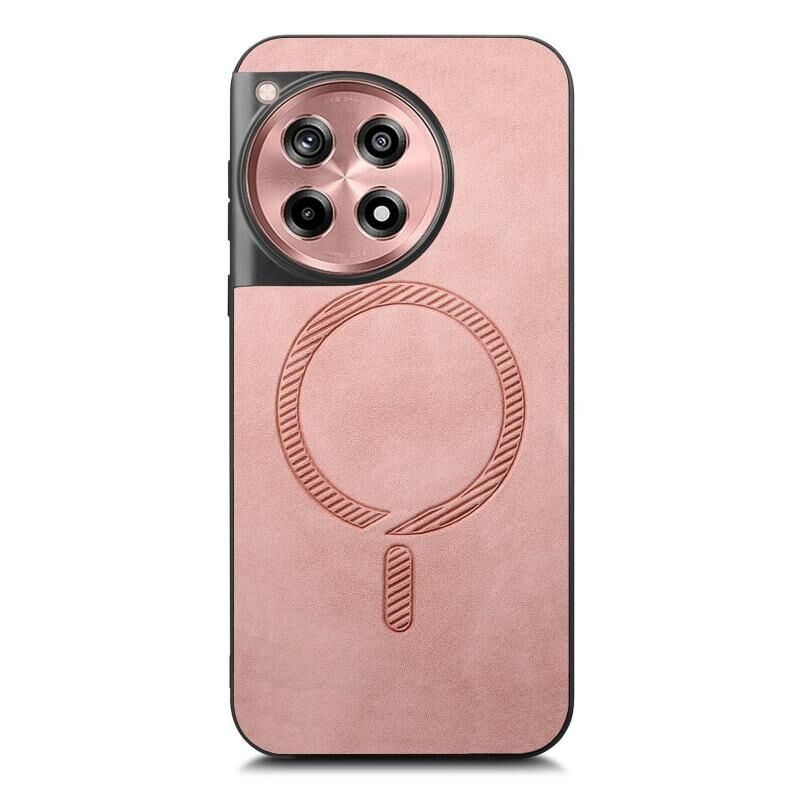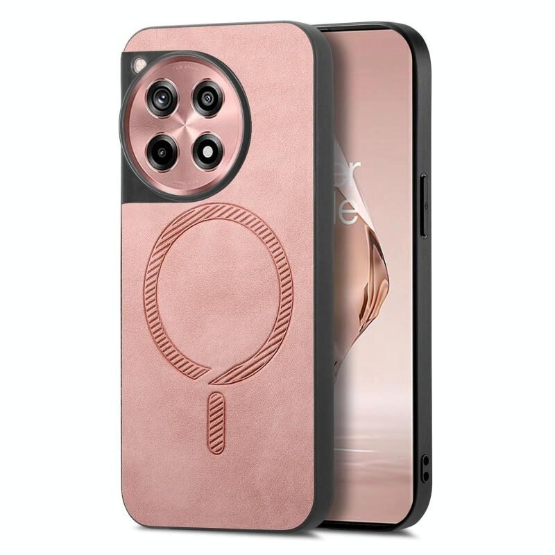 Θήκη κινητού τηλεφώνου με μαγνητική σύνδεση (Magsafe) από PU δέρμα, μονόχρωμη, ρετρό, για OnePlus Ace 3 / 12R 5G (Ροζ)