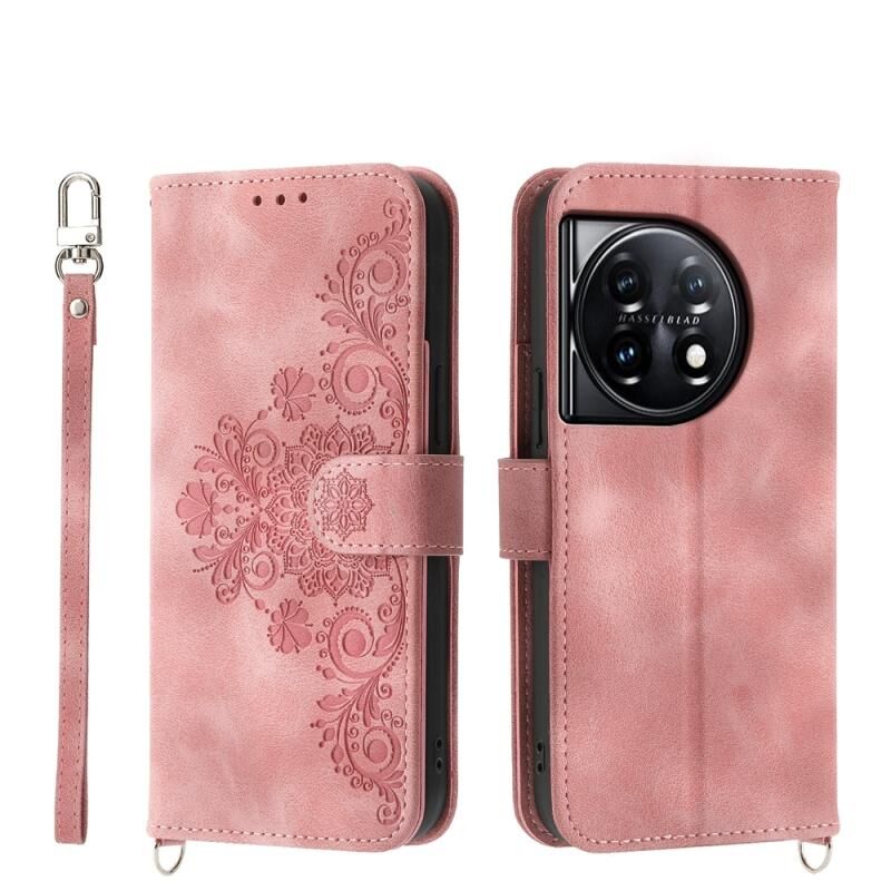Για OnePlus Ace 3 / 12R Skin-feel λουλούδια ανάγλυφο πορτοφόλι δερμάτινη θήκη τηλεφώνου (ροζ)