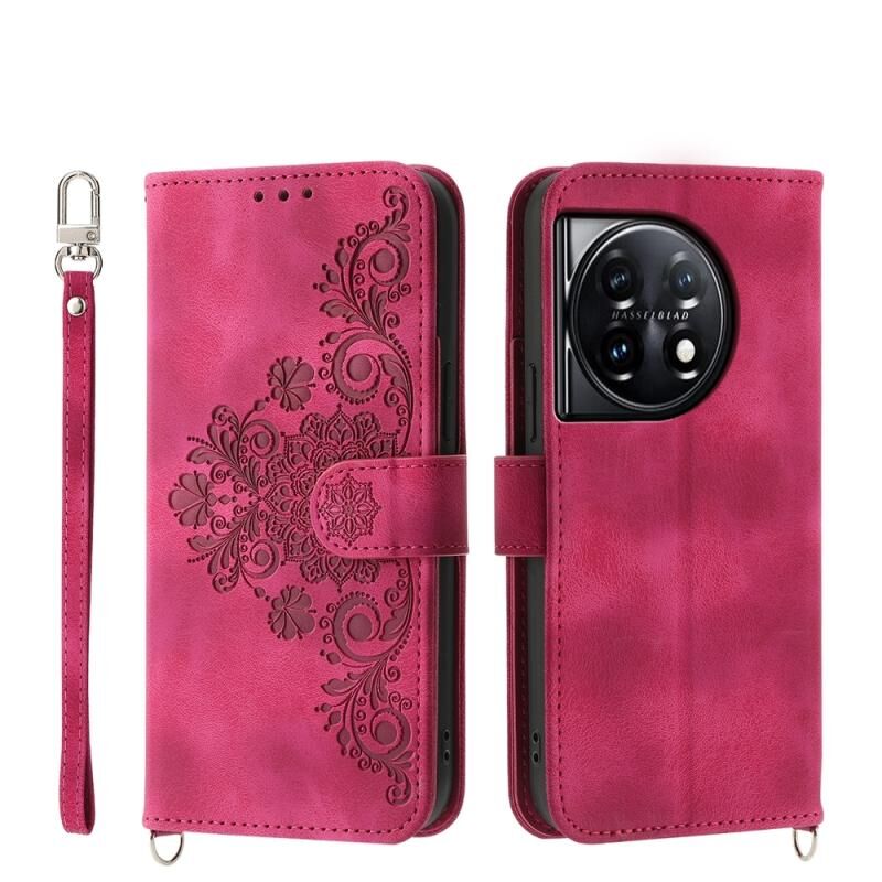 Για OnePlus Ace 3 / 12R Skin-feel Λουλούδια ανάγλυφο πορτοφόλι δερμάτινη θήκη τηλεφώνου (κόκκινο κρασί)