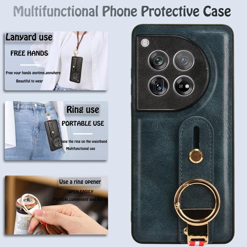 Για OnePlus Ace 3 / 12R Wristband δέρμα πίσω υπόθεση τηλεφώνου (μπλε)