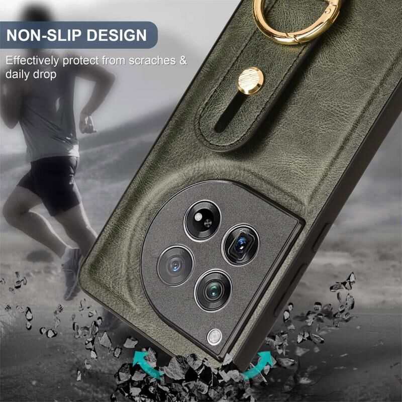 Για OnePlus Ace 3 / 12R Wristband δέρμα πίσω υπόθεση τηλεφώνου (πράσινο)