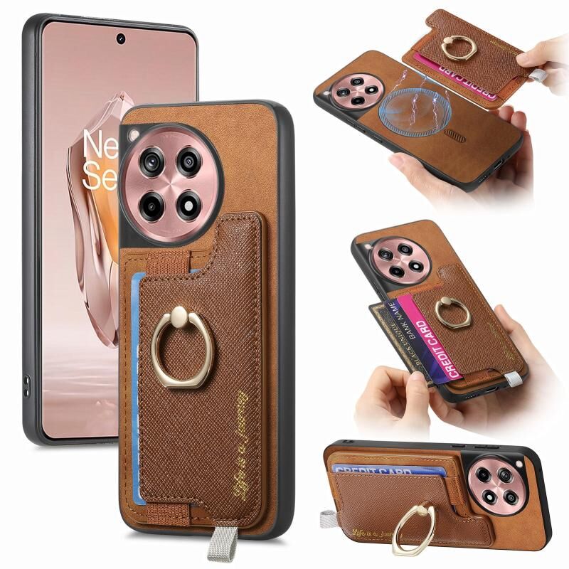 Θήκη τηλεφώνου για OnePlus Ace 3 5G / 12R 5G, Ρετρό Magsafe, Δερμάτινη με Δαχτυλίδι και Θήκη Καρτών (Ροζ)