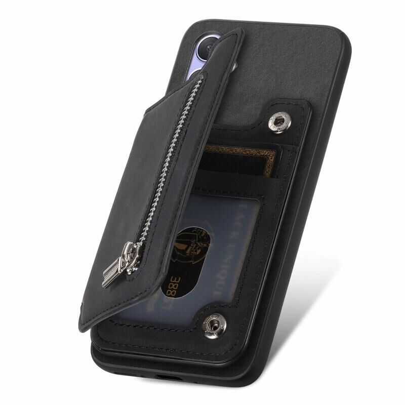 For OnePlus Ace 3 5G / 12R 5G Retro MagSafe Zipper Wallet Card Bag Back Phone Case(Black)