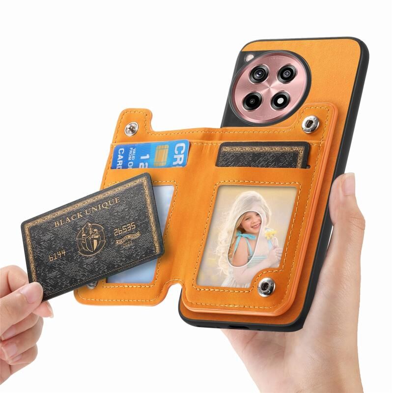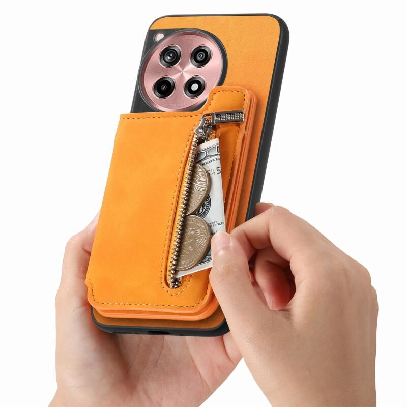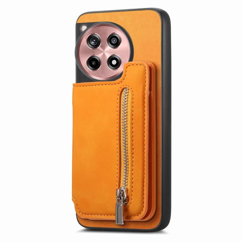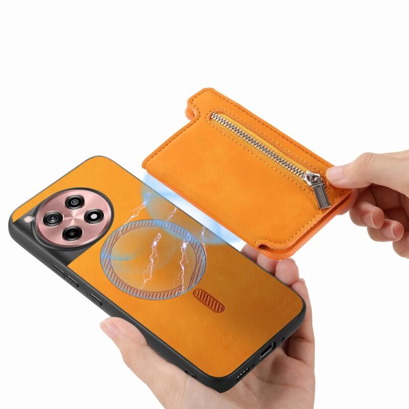 For OnePlus Ace 3 5G / 12R 5G Retro MagSafe Zipper Wallet Card Bag Back Phone Case(Yellow)