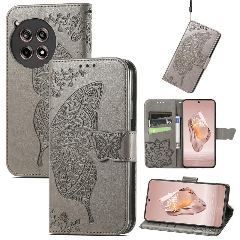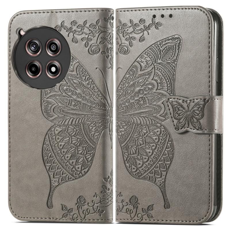 Θήκη τηλεφώνου από δέρμα με ανάγλυφο σχέδιο πεταλούδας και λουλουδιών για OnePlus Ace 3 (Μπλε)