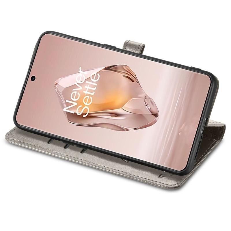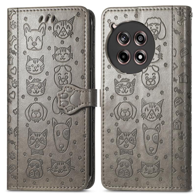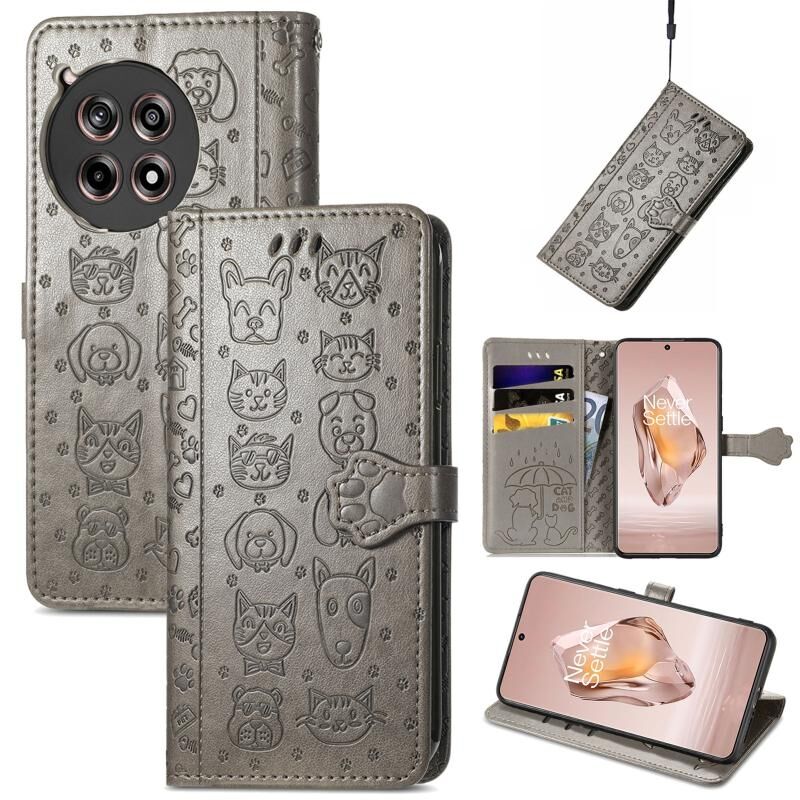 Θήκη τηλεφώνου από δέρμα με ανάγλυφο σχέδιο γάτας και σκύλου για OnePlus Ace 3 (Χρυσορόδινο)