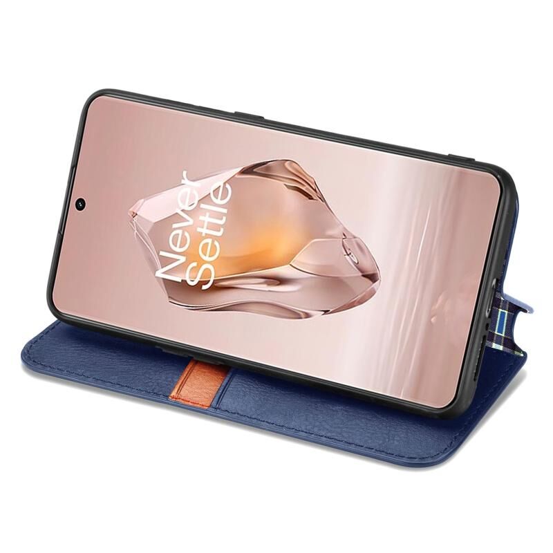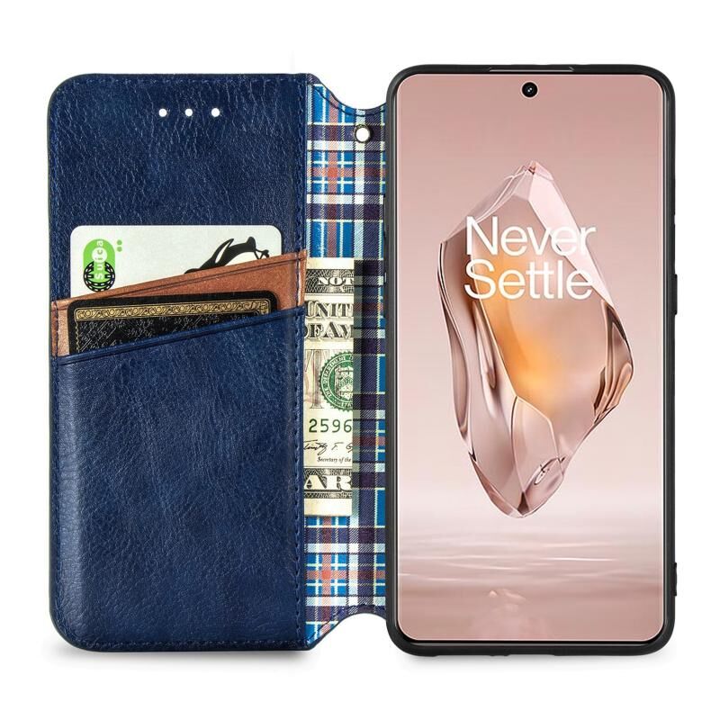 Για OnePlus Ace 3 Cubic Grid πιέζεται μαγνητική δερμάτινη θήκη τηλεφώνου (μπλε)