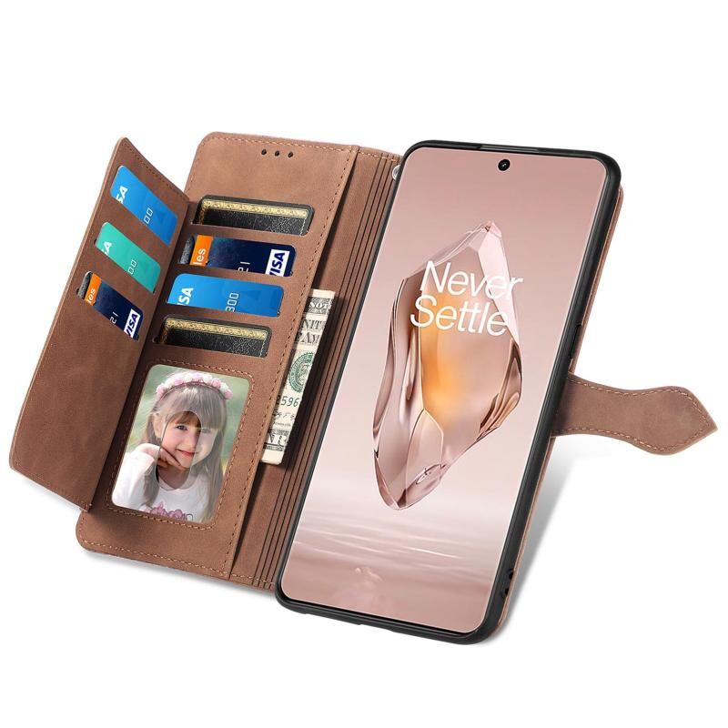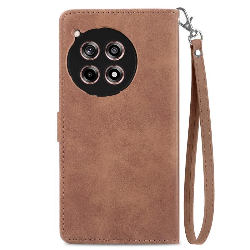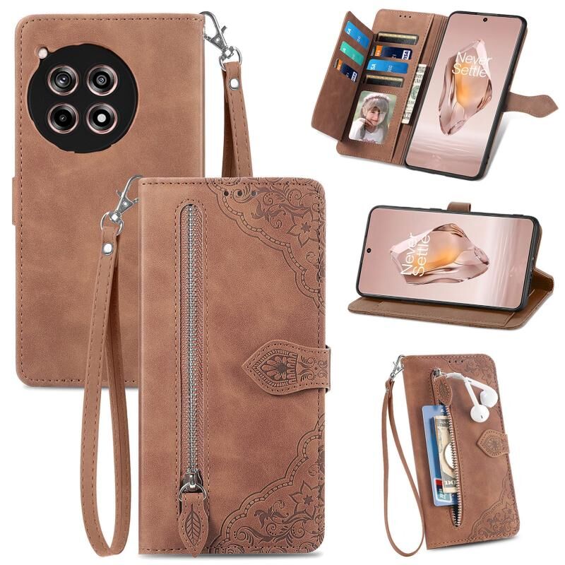 Για OnePlus Ace 3 ανάγλυφο λουλούδι φερμουάρ δερμάτινη θήκη τηλεφώνου (καφέ)