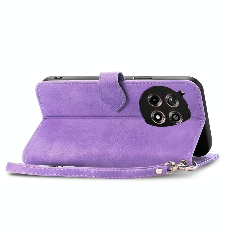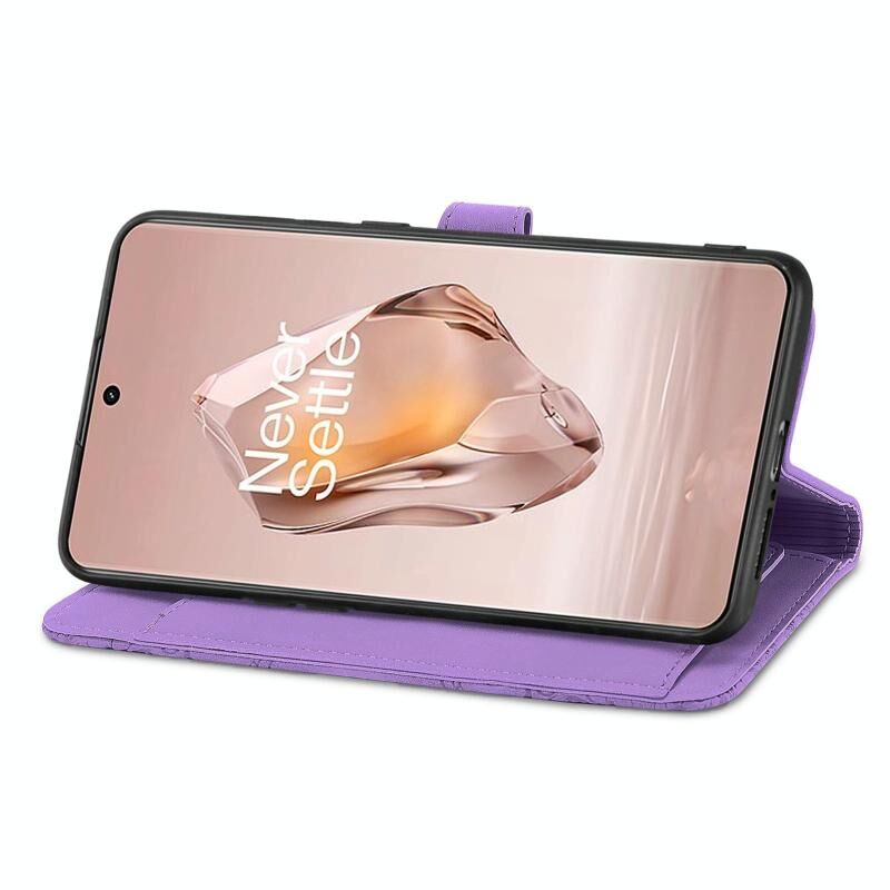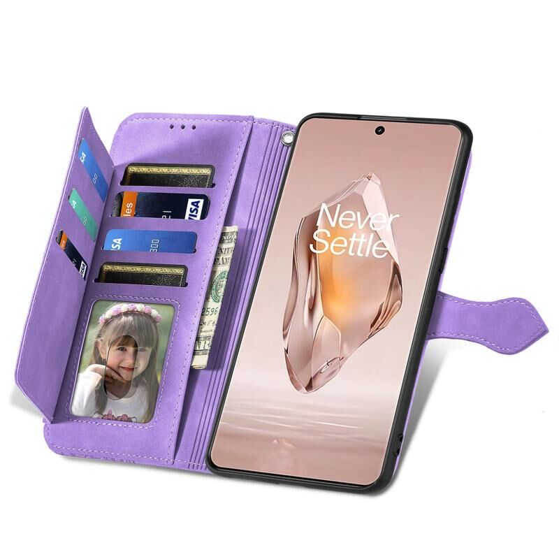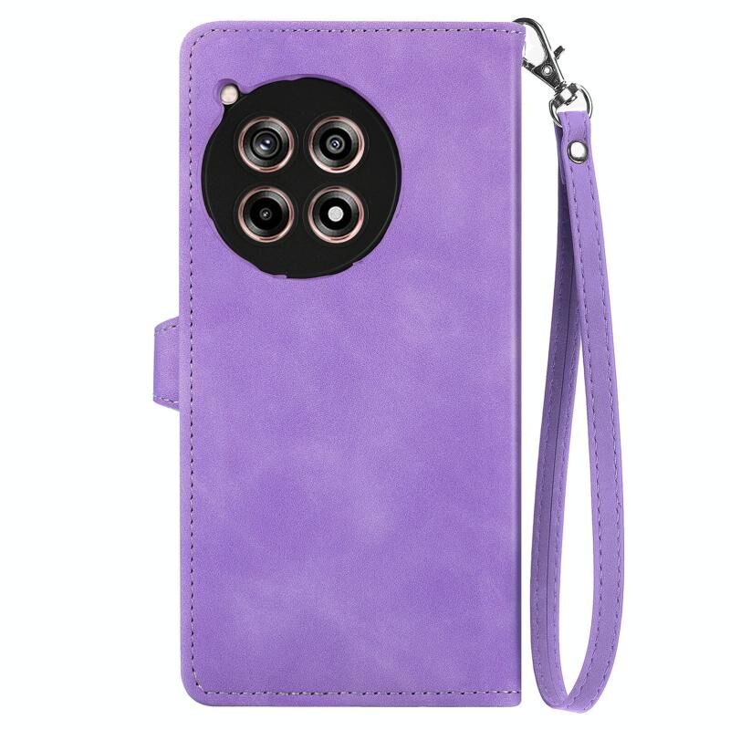 Για OnePlus Ace 3 ανάγλυφο λουλούδι φερμουάρ δερμάτινη θήκη τηλεφώνου (μωβ)