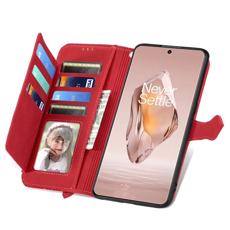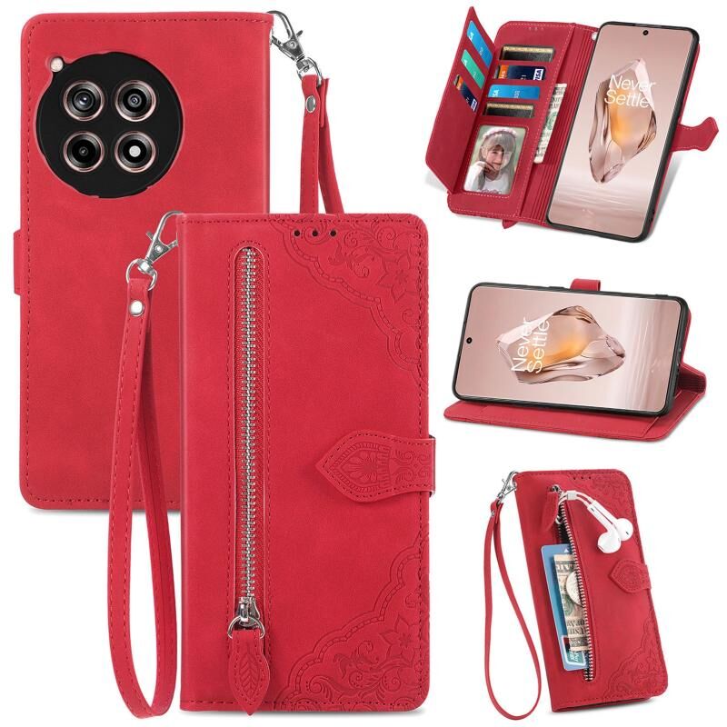 Για OnePlus Ace 3 ανάγλυφο λουλούδι φερμουάρ δερμάτινη θήκη τηλεφώνου (κόκκινο)
