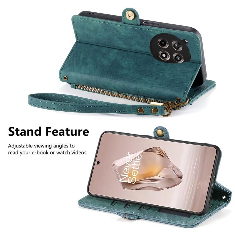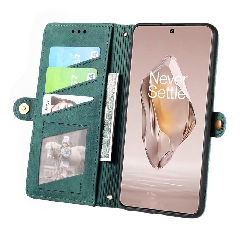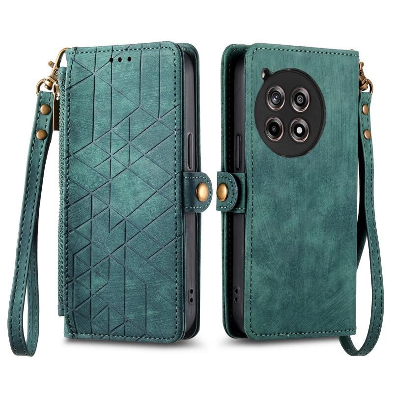 Για OnePlus Ace 3 γεωμετρική φερμουάρ πορτοφόλι πλευρά πόρπη δερμάτινη θήκη τηλεφώνου (πράσινο)