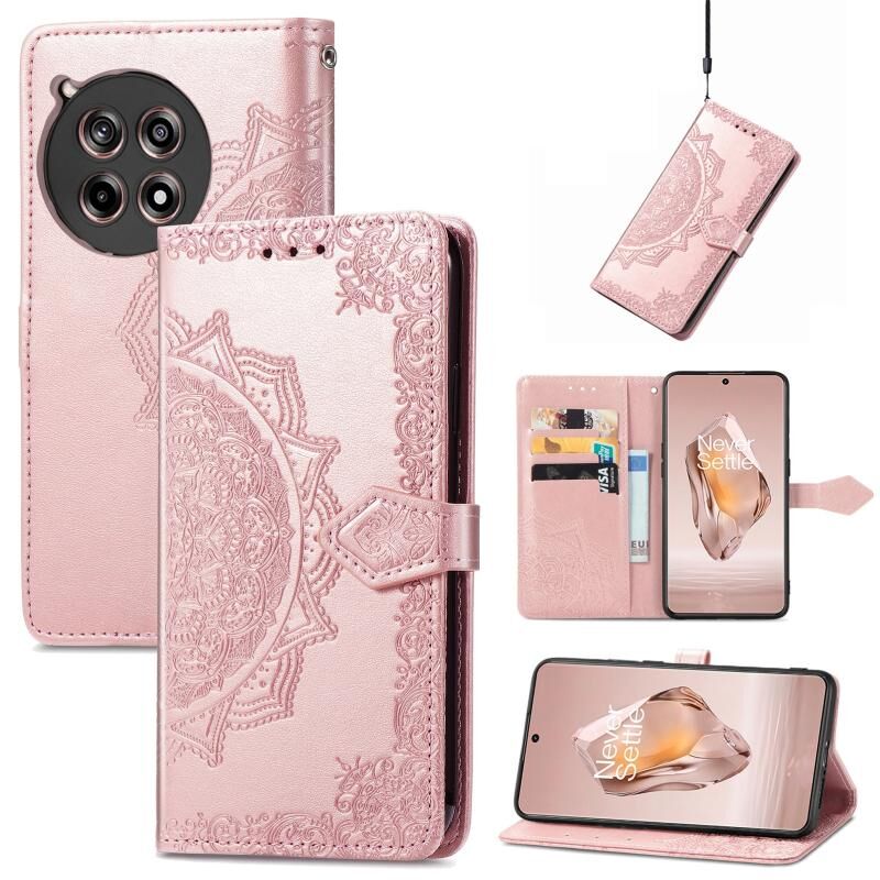 Για OnePlus Ace 3 Mandala λουλούδι ανάγλυφο δερμάτινη θήκη τηλεφώνου (Rose Gold)