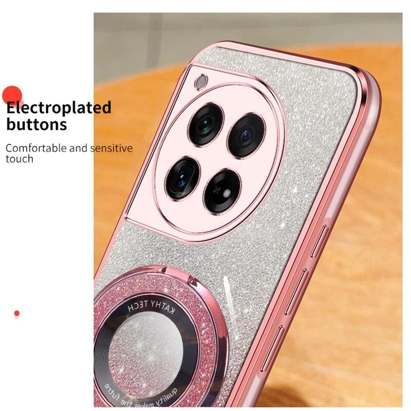 Για OnePlus Ace 3 επιμεταλλωμένο διαβάθμιση Glitter στρογγυλό κάτοχος TPU τηλέφωνο υπόθεση (ροζ)