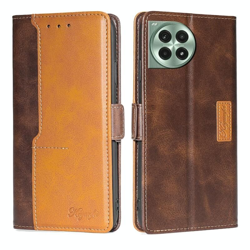 Για OnePlus Ace 3 Pro 5G αντίθεση χρώμα πλευρά πόρπη δερμάτινη θήκη τηλεφώνου υπόθεση (σκούρο καφέ + χρυσό)
