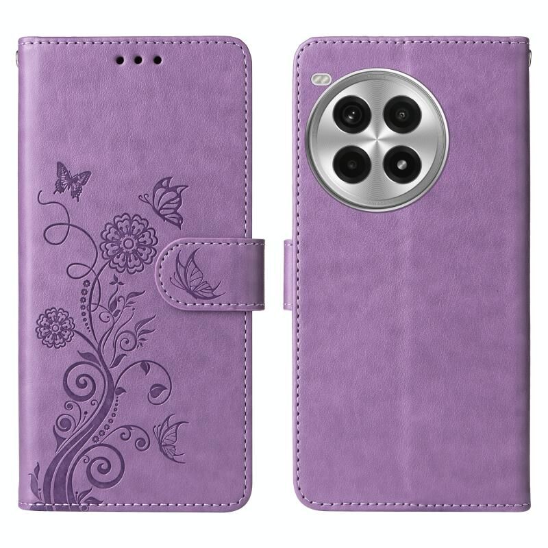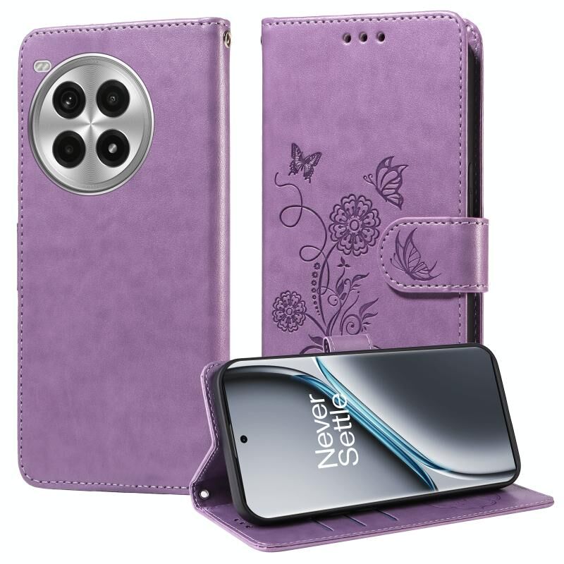 Θήκη τηλεφώνου από δέρμα με ανάγλυφα σχέδια πεταλούδας και λουλουδιών για OnePlus Ace 3 Pro 5G (Μωβ)