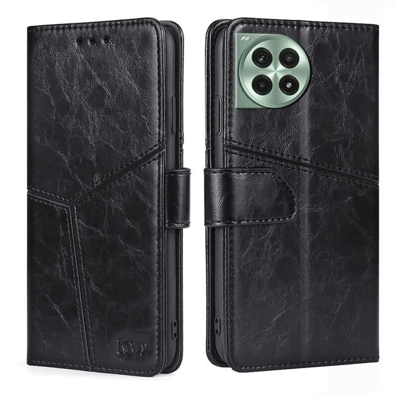 Για OnePlus Ace 3 Pro 5G γεωμετρική ραφή δερμάτινη θήκη τηλεφώνου (μαύρο)