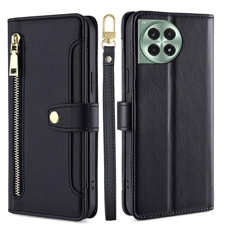 Για OnePlus Ace 3 Pro 5G Sheep Texture Cross-body φερμουάρ πορτοφόλι δερμάτινη θήκη τηλεφώνου (μαύρο)