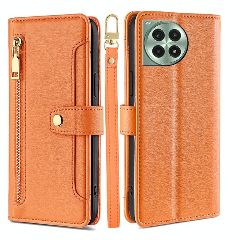 Για OnePlus Ace 3 Pro 5G Πρόβατα υφή Cross-body φερμουάρ πορτοφόλι δερμάτινη θήκη τηλεφώνου (πορτοκαλί)