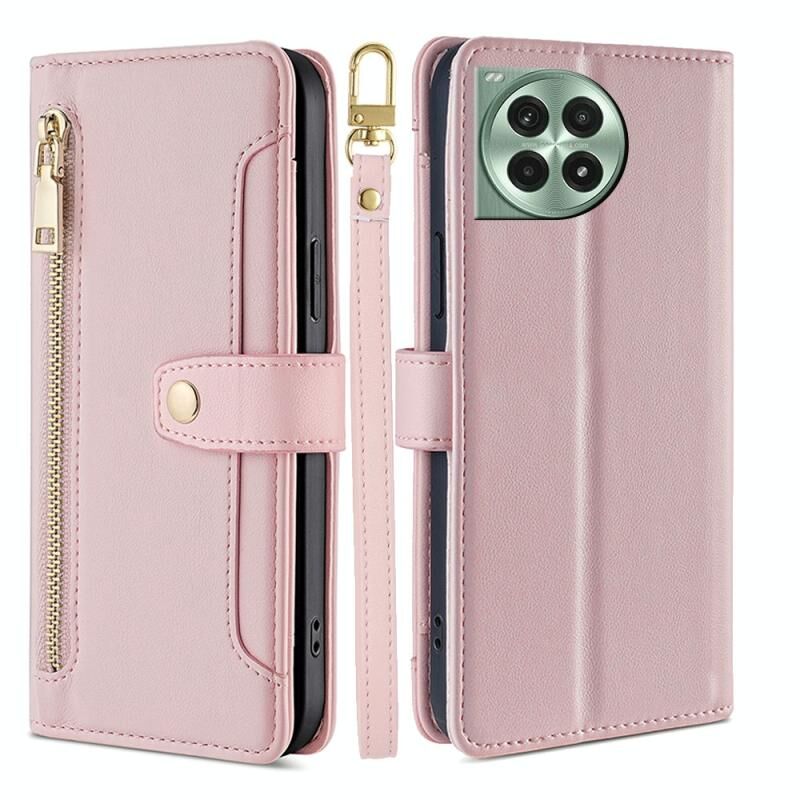 Για OnePlus Ace 3 Pro 5G Πρόβατα υφή Cross-body φερμουάρ πορτοφόλι δερμάτινη θήκη τηλεφώνου (ροζ)