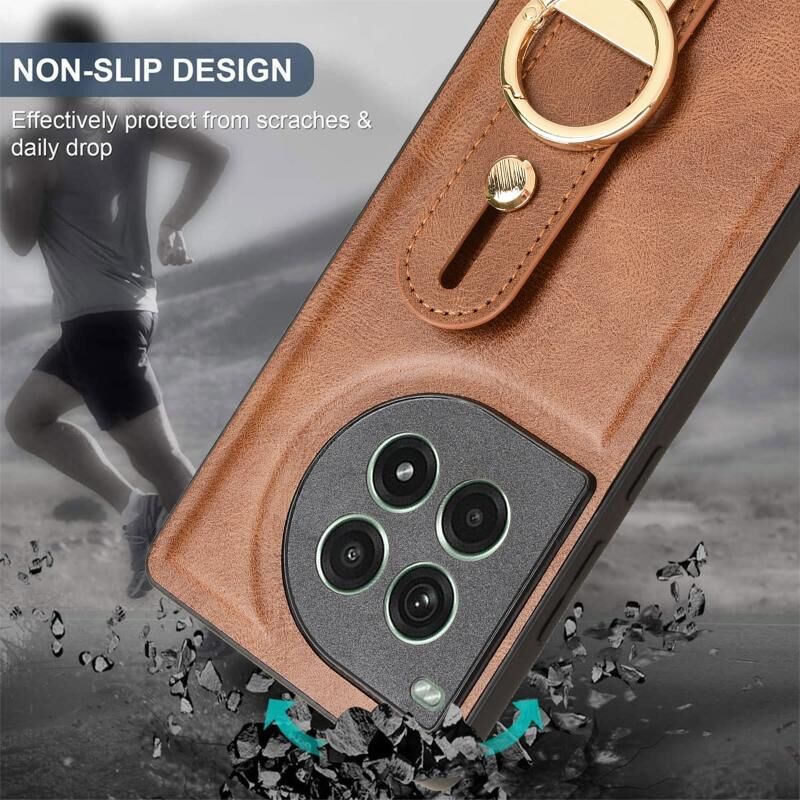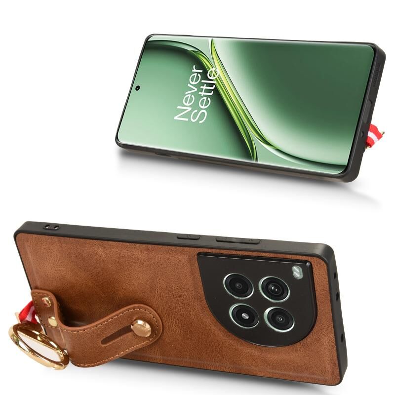 Για OnePlus Ace 3 Pro 5G Wristband δέρμα πίσω υπόθεση τηλεφώνου (καφέ)