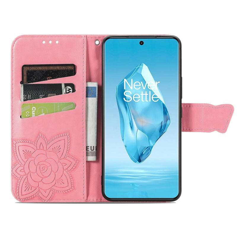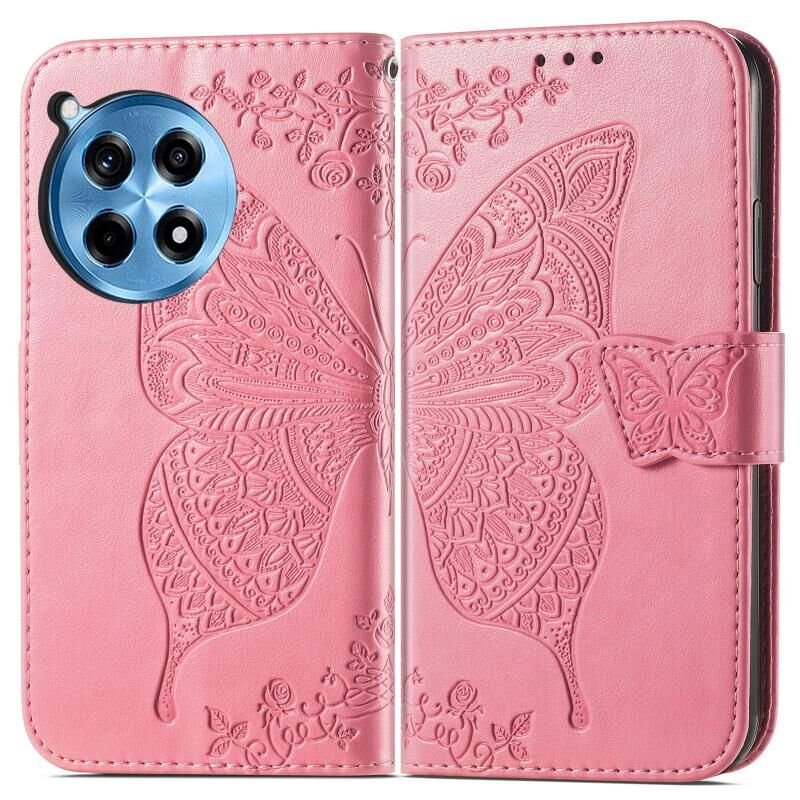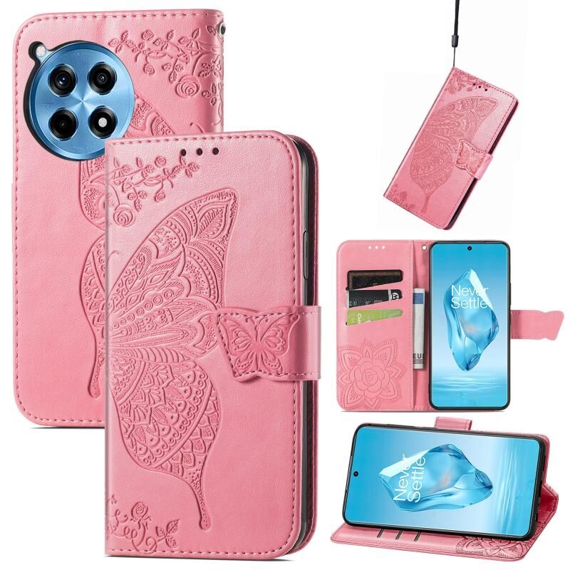 Για OnePlus Ace 3 Pro πεταλούδα αγάπη λουλούδι ανάγλυφο δερμάτινη θήκη τηλεφώνου (ροζ)
