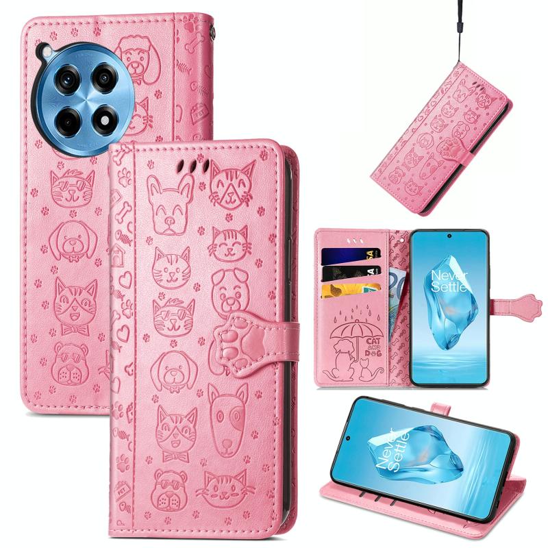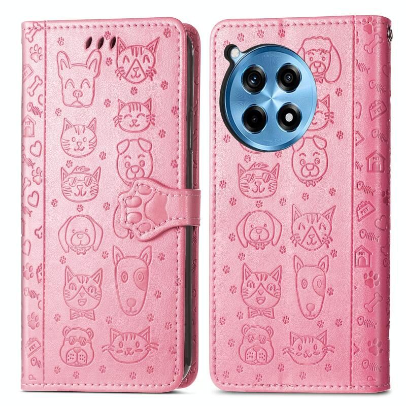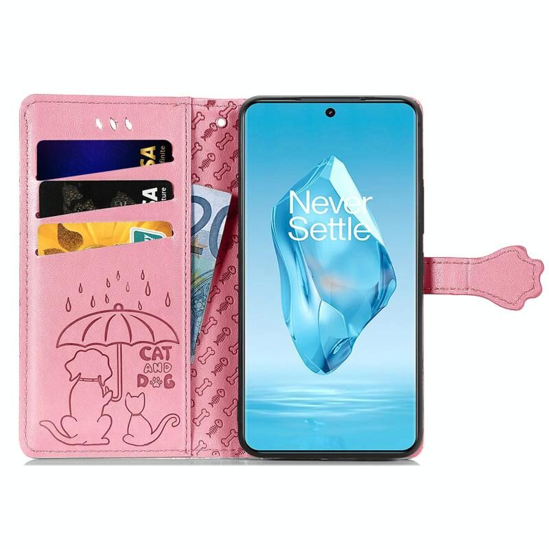 Θήκη Δερμάτινη με Χαρακτά Cat & Dog για OnePlus Ace 3 Pro (Ροζ)