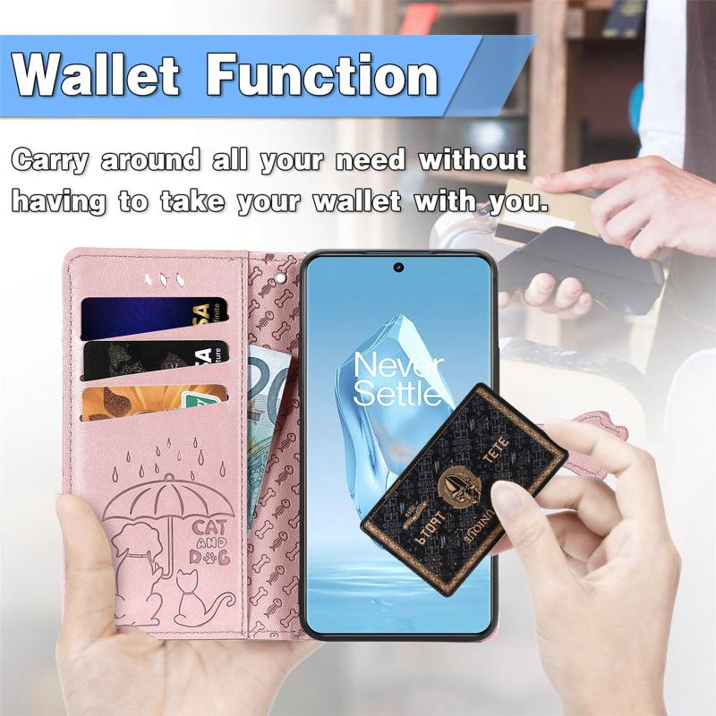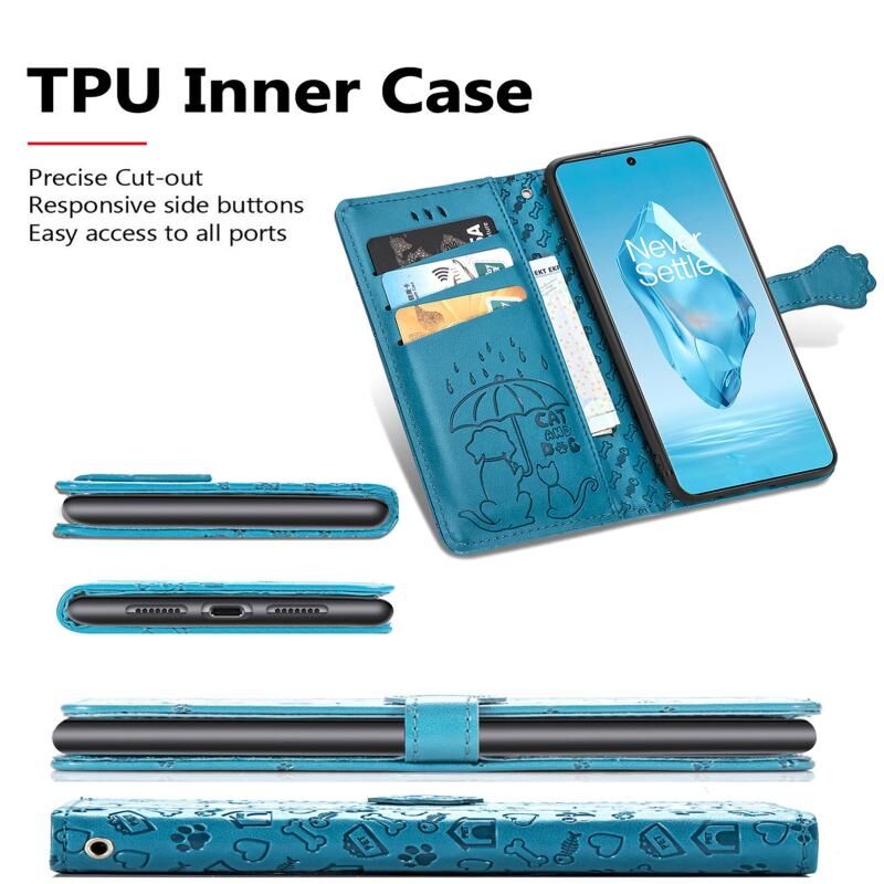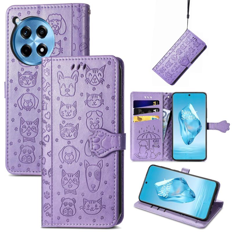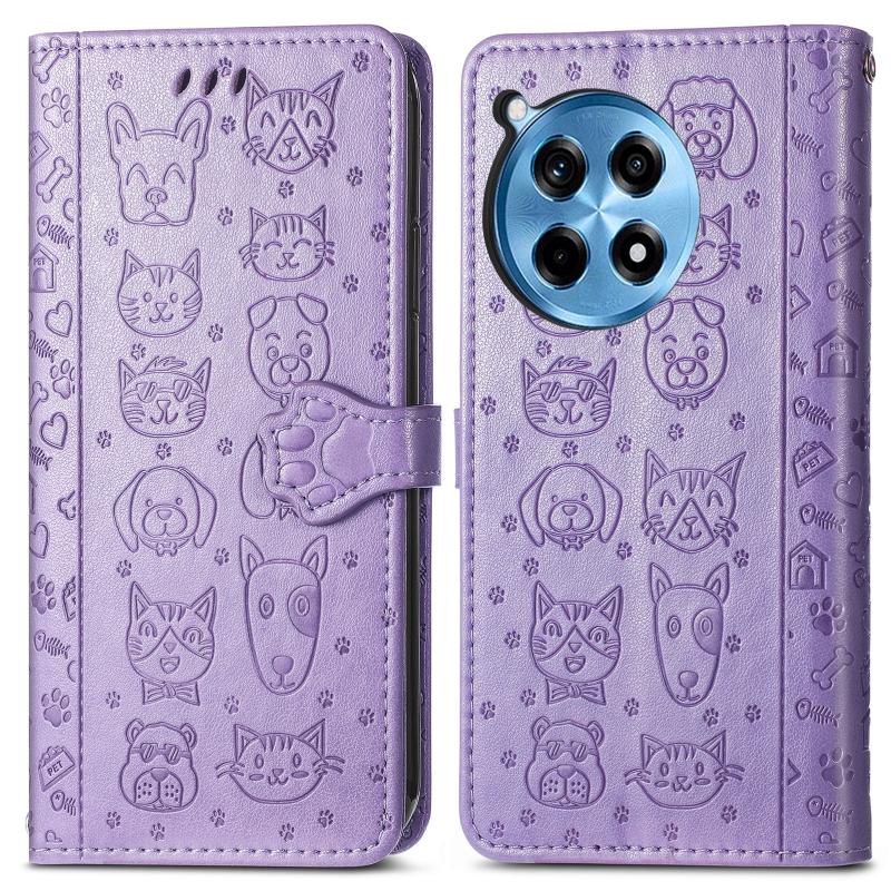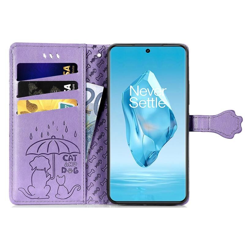 Θήκη Δερμάτινη με Χαρακτά Cat & Dog για OnePlus Ace 3 Pro (Μωβ)