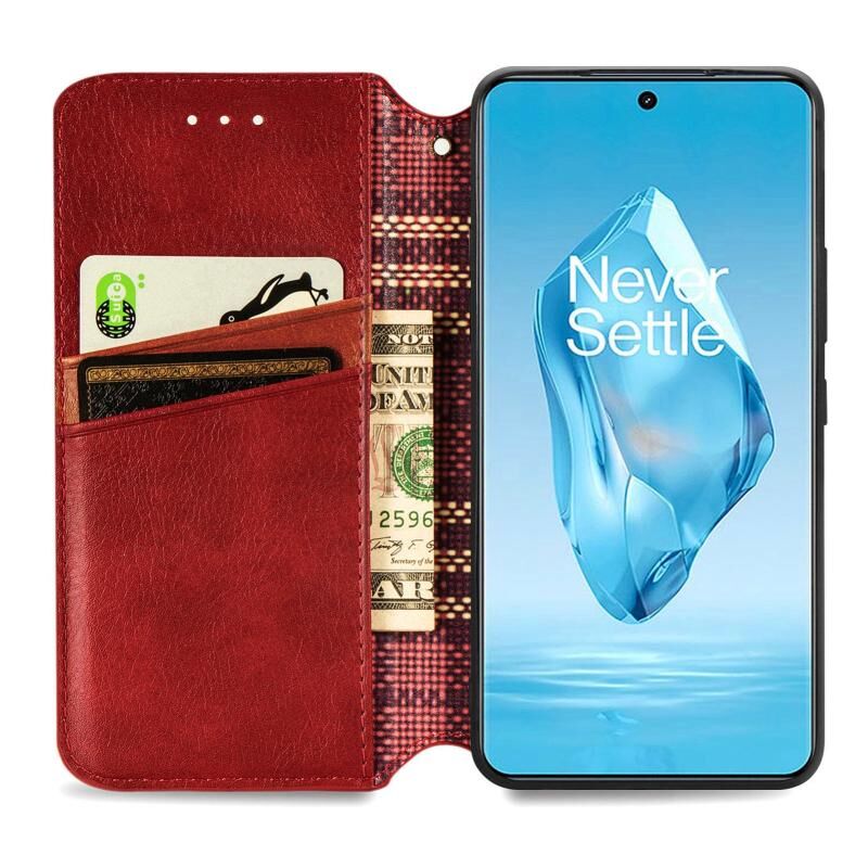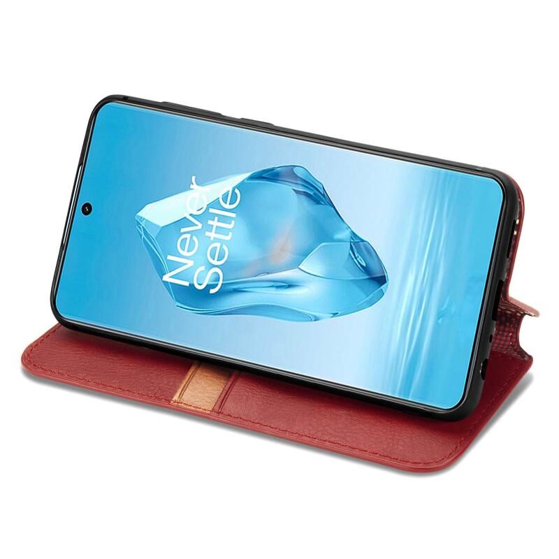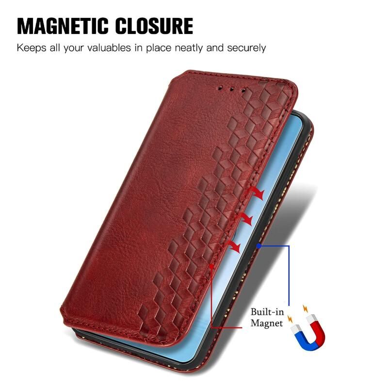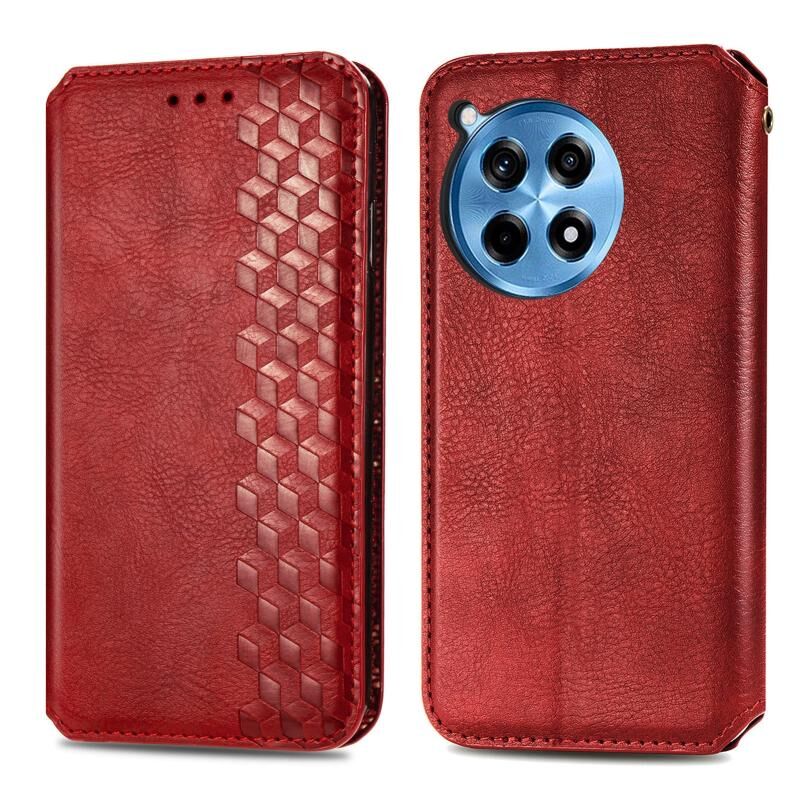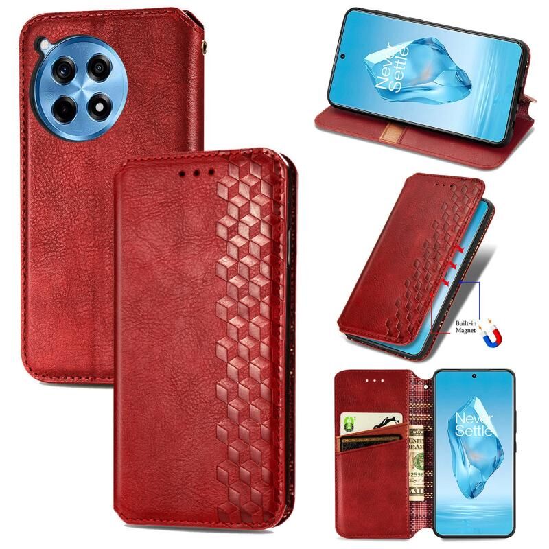 Για OnePlus Ace 3 Pro Cubic Grid πιεσμένο μαγνητικό δέρμα τηλέφωνο υπόθεση (κόκκινο)
