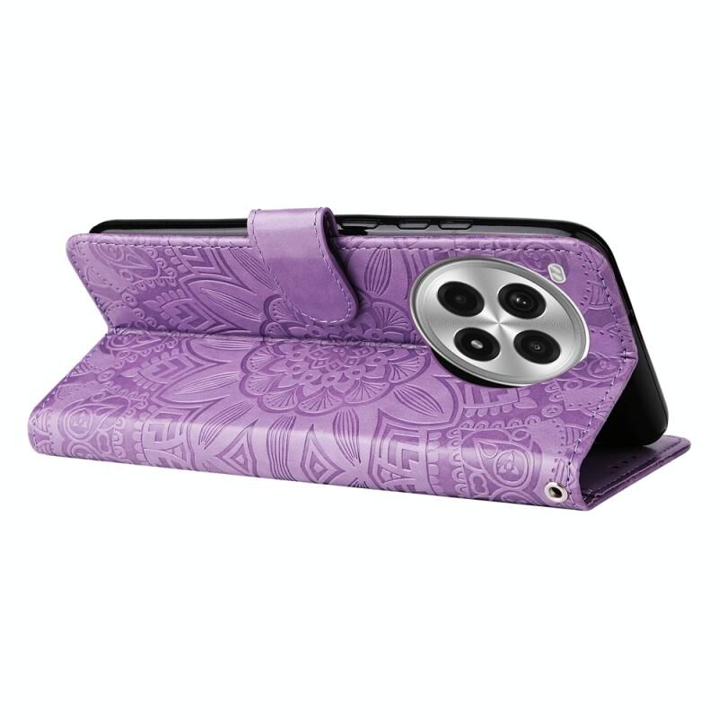 Για OnePlus Ace 3 Pro ανάγλυφο ηλιοτρόπιο δερμάτινη θήκη τηλεφώνου (μωβ)