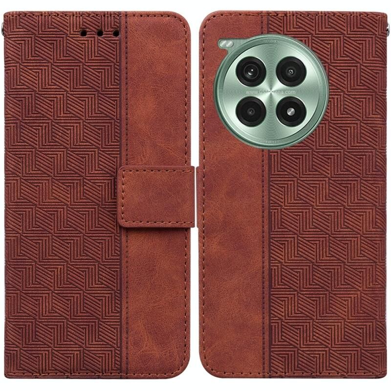 Για OnePlus Ace 3 Pro γεωμετρική ανάγλυφη δερμάτινη θήκη τηλεφώνου (καφέ)