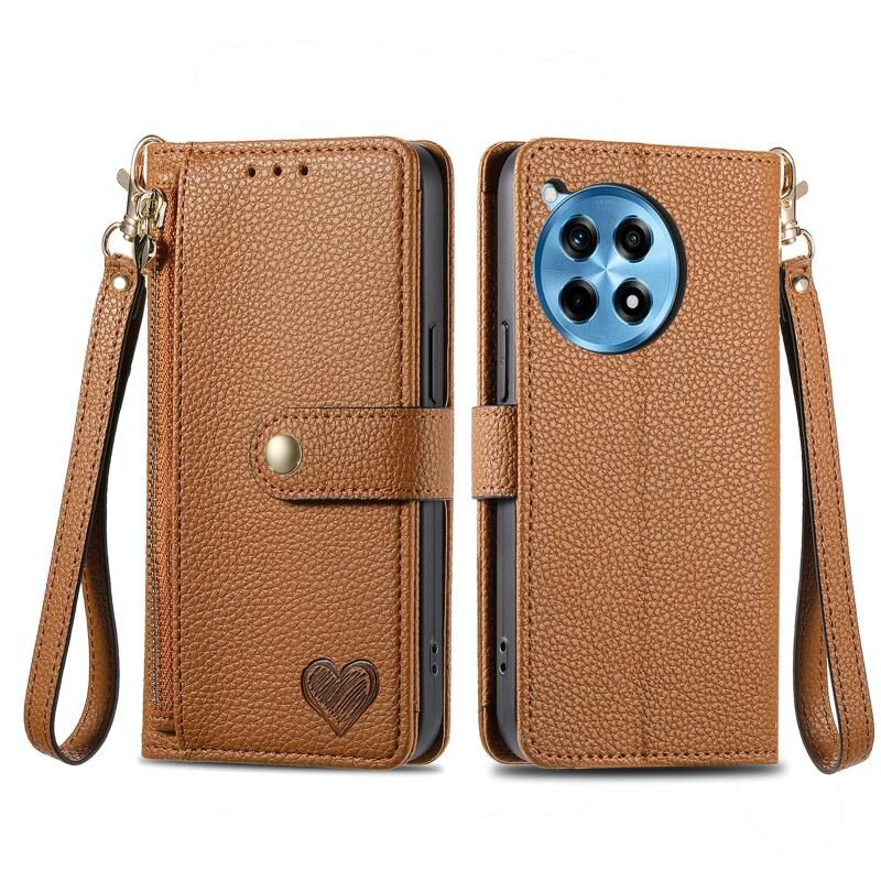 Για OnePlus Ace 3 Pro αγάπη φερμουάρ φερμουάρ δερμάτινη θήκη τηλεφώνου (καφέ)