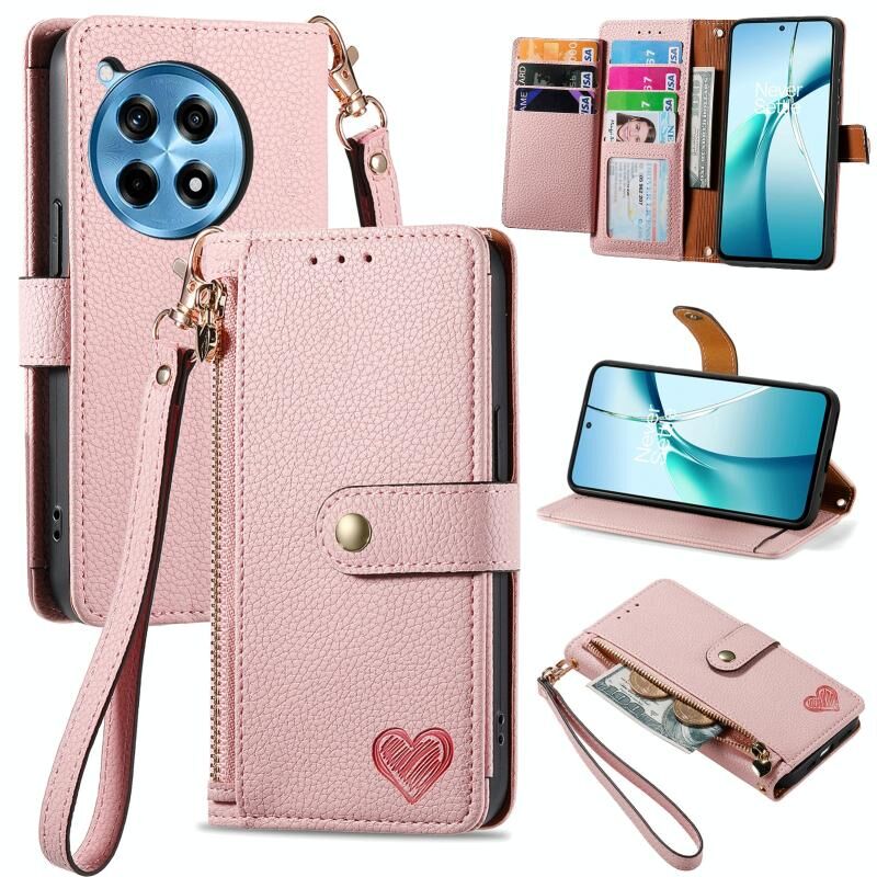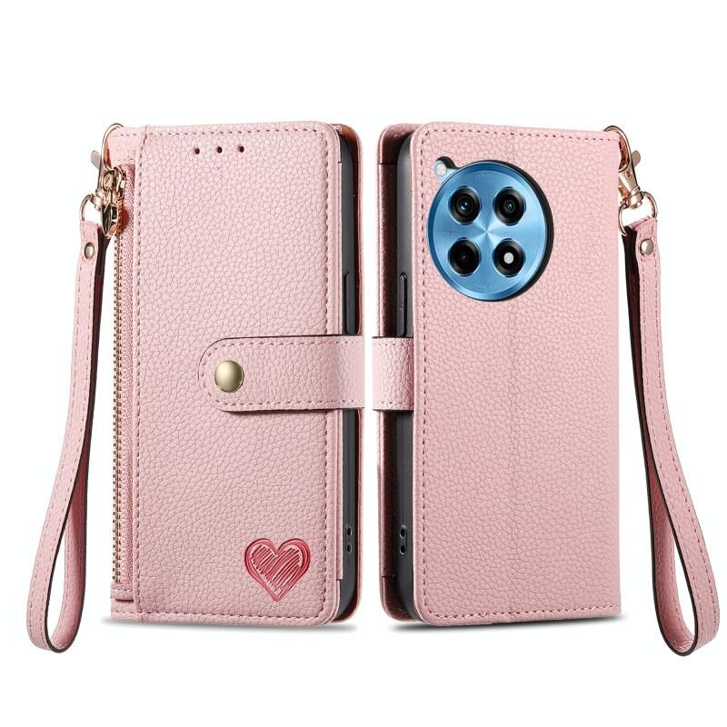 Για OnePlus Ace 3 Pro αγάπη φερμουάρ φερμουάρ δερμάτινη θήκη τηλεφώνου (ροζ)