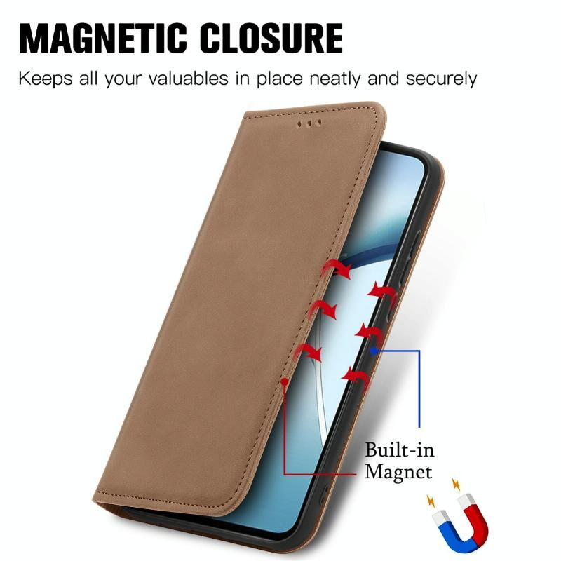 Για OnePlus Ace 3 Pro Ρετρό δέρμα αίσθηση μαγνητική Flip δέρμα τηλέφωνο υπόθεση (καφέ)