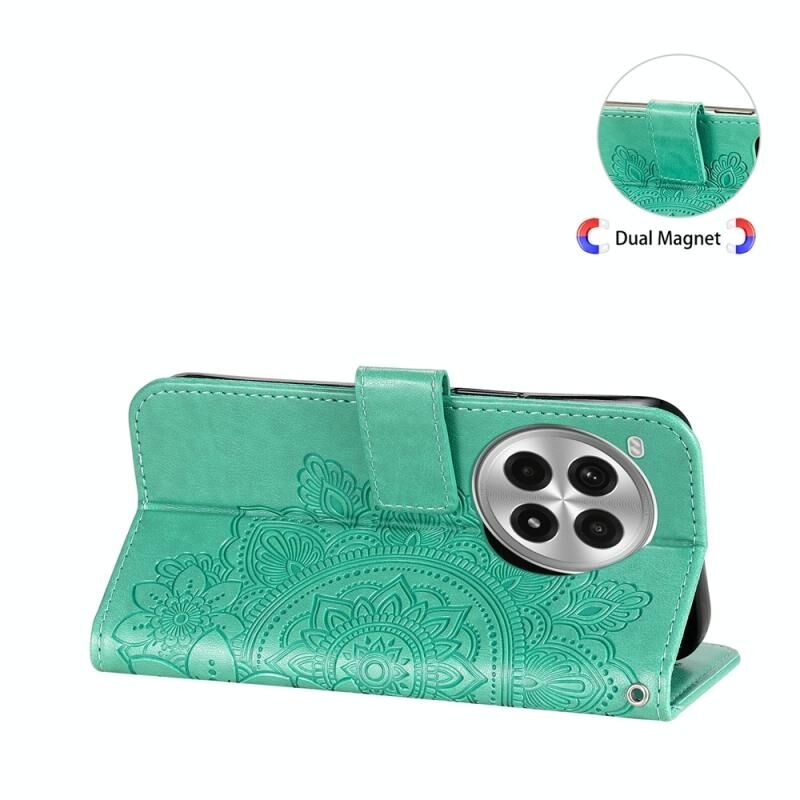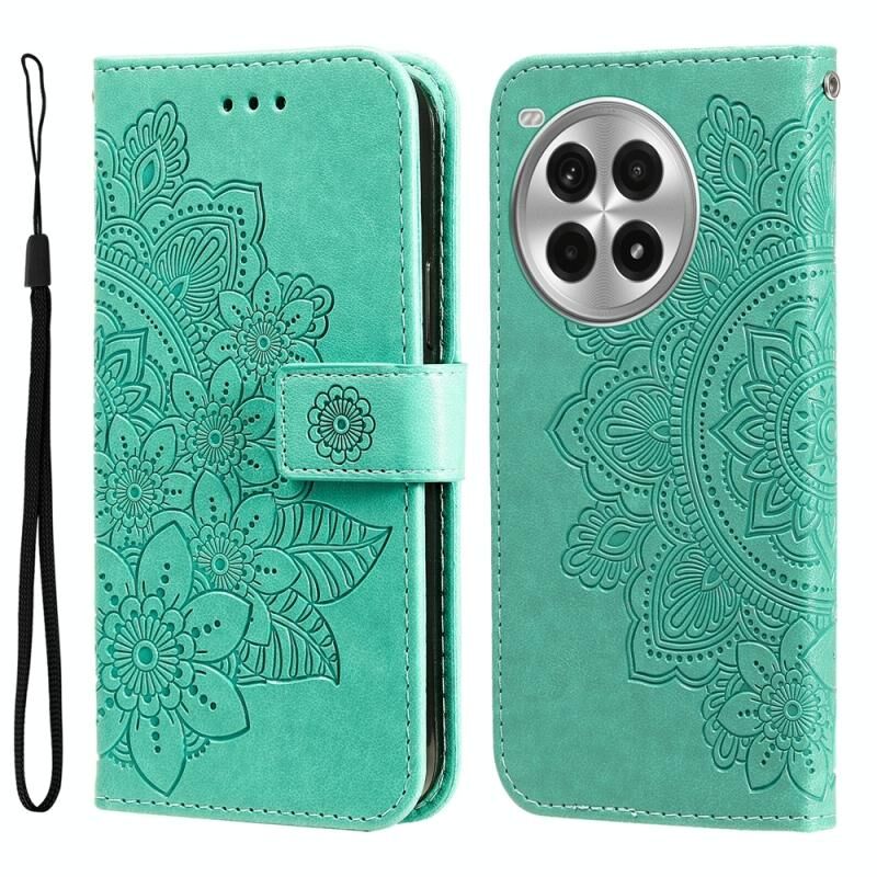 Για OnePlus Ace 3 Pro Επτά-πέταλα λουλούδια ανάγλυφη δερμάτινη θήκη τηλεφώνου (πράσινο)