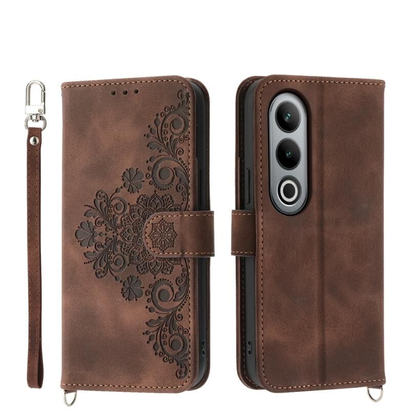 Για OnePlus Ace 3V Skin-feel Λουλούδια ανάγλυφο πορτοφόλι δερμάτινη θήκη τηλεφώνου (καφέ)