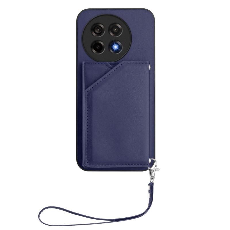 For OnePlus Ace 5 / Ace 5 Pro Skin Feel Four Card Slots Phone Case with Wrist Strap(Blue)