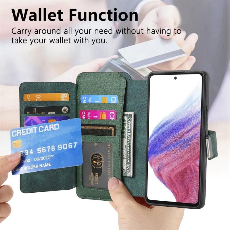 2. Λειτουργία πορτοφολιού με φερμουάρ: Η δερμάτινη θήκη είναι εξοπλισμένη με πορτοφόλι με φερμουάρ και υποδοχές για κάρτες για την τοποθέτηση καρτών και μικρού ποσού μετρητών.