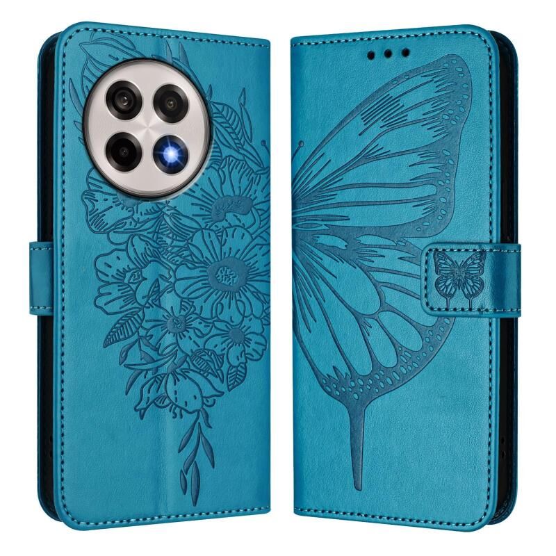 Θήκη τηλεφώνου από δέρμα με ανάγλυφο σχέδιο πεταλούδας για OnePlus Ace 5 Pro / Ace 5 (Σκούρο Μωβ)